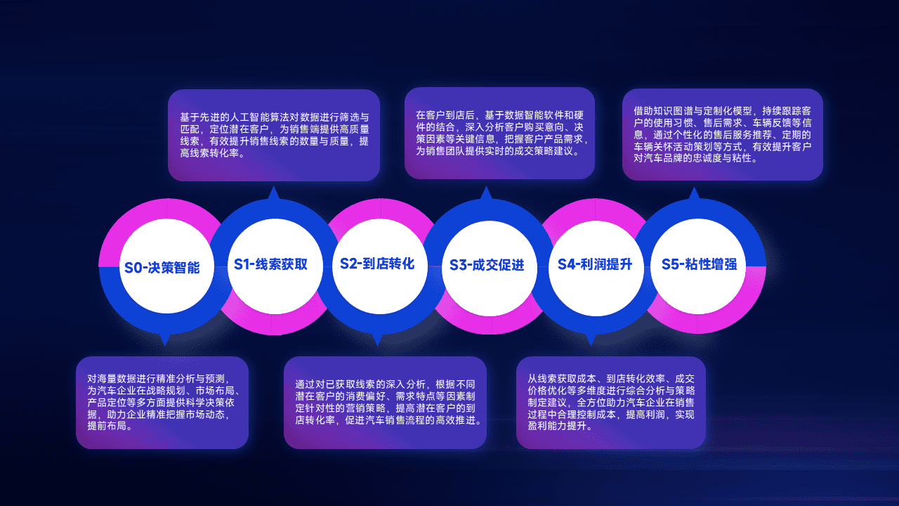 通过拓宽潜在客户来源、、、优化线索分配并提高到店转化率,,,,以增强销售效率。。同时,,,利用线索数据不断优化分析模型,,,有效提升转化率,,扩大营销影响力。。。。